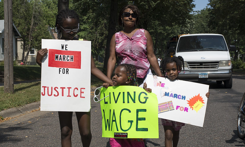 A march in Minneapolis on August 24, 2013, marking the 50th anniversary of Dr. Martin Luther King Jr.’s March on Washington D.C. A guaranteed income program inspired by King will send monthly payments of $850 to 650 Black women living in Atlanta over two years.(Fibonacci Blue / Creative Commons)