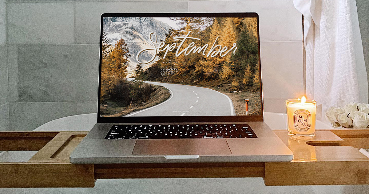 I can feel the crisp fall air right around the corner and I am not mad about it. One thing about me is that as soon as the clock strikes 12 on September 1st, I’ll be decorating for fall. So when I started working through tech backgrounds for September, I knew I wanted to sprinkle in some of my favorite fall moments. We have everything from apple picking, the leaves changing colors, warm drinks, and all the cozy vibes!