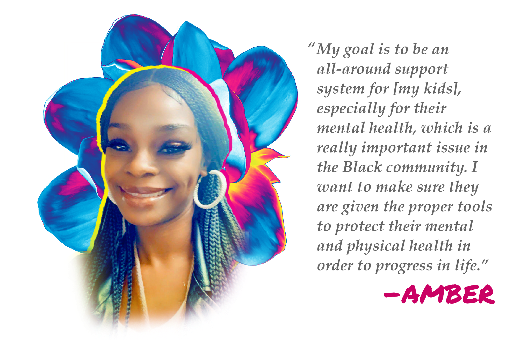 My goal with my kids is to be an all-around support system for them in all aspects of their life, especially for their mental health because I think that’s a really important issue in the Black community. I want to make sure they are given the proper tools to protect their mental and physical health in order to progress in life.