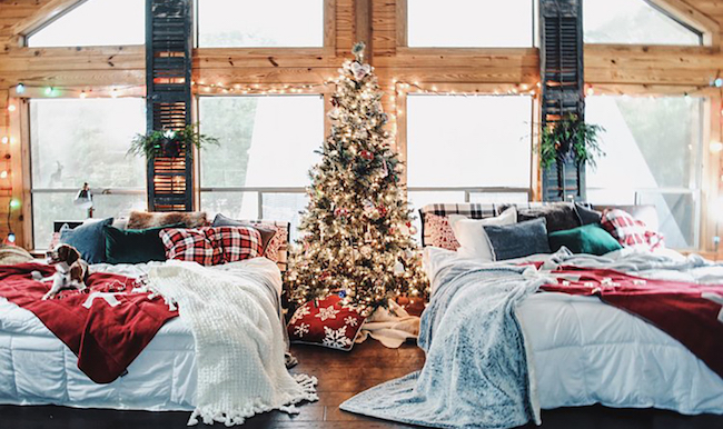 To put it lightly, Peyton and Shelly’s home looks like something straight out of a Christmas movie. Vintage ornaments, faux fur, twinkle lights, ceiling-high Christmas trees… all rolled into their incredible cabin—it’s the stuff dreams are made of.