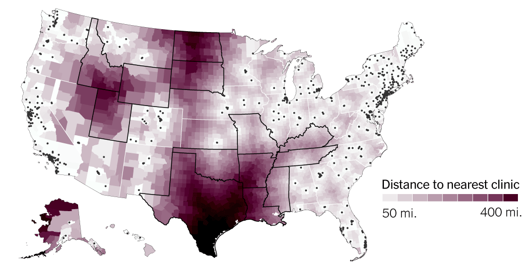 Research has shown that when clinics close and driving distances increase, there are corresponding drops in the number of women obtaining abortions.