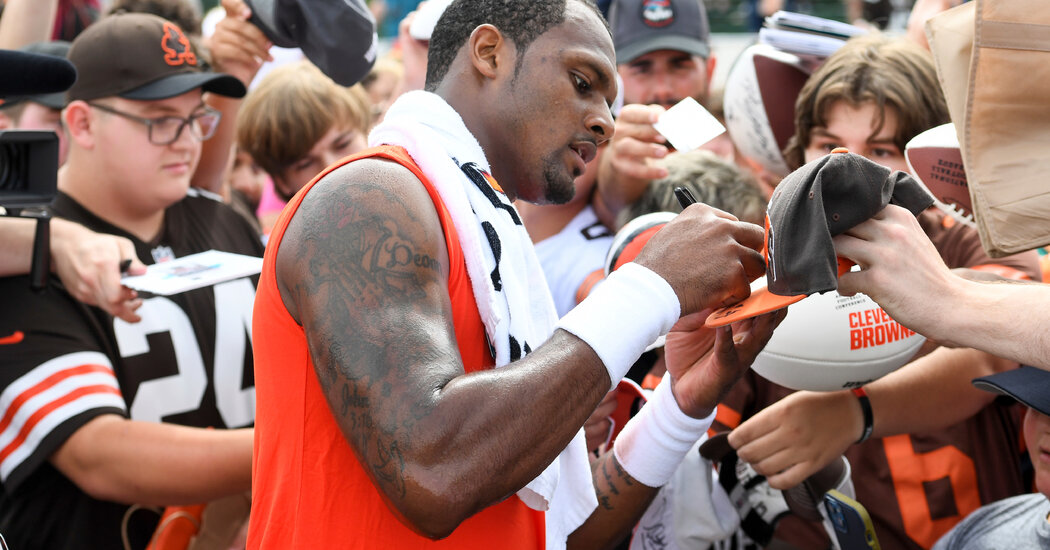 In Robinson’s report, she concluded that Watson’s behavior toward the massage therapists was not violent under the N.F.L.’s definition of the term. As a result, she said, she was limited in the discipline she could hand out. Robinson wrote that while it may be “entirely appropriate” to more severely discipline players for what the N.F.L. defined as nonviolent sexual conduct, she did not believe it was fair to do so given the league’s current standards.