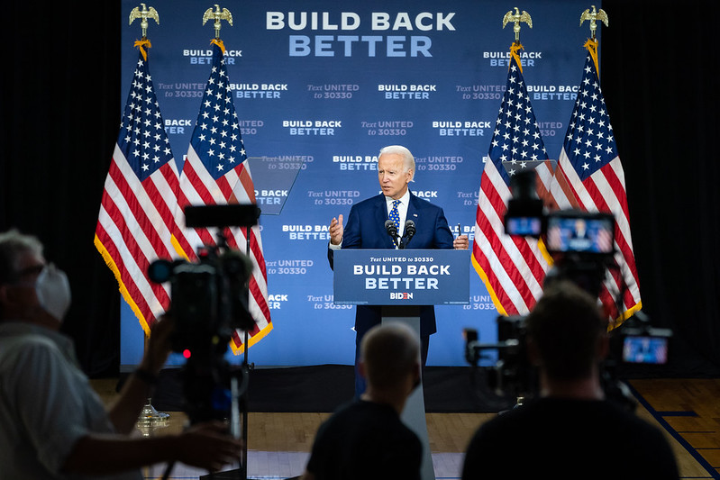 President Biden on the campaign trail promoting the Build Back Better plan in on Wilmington, Del., on July 28, 2020. (Adam Schultz)